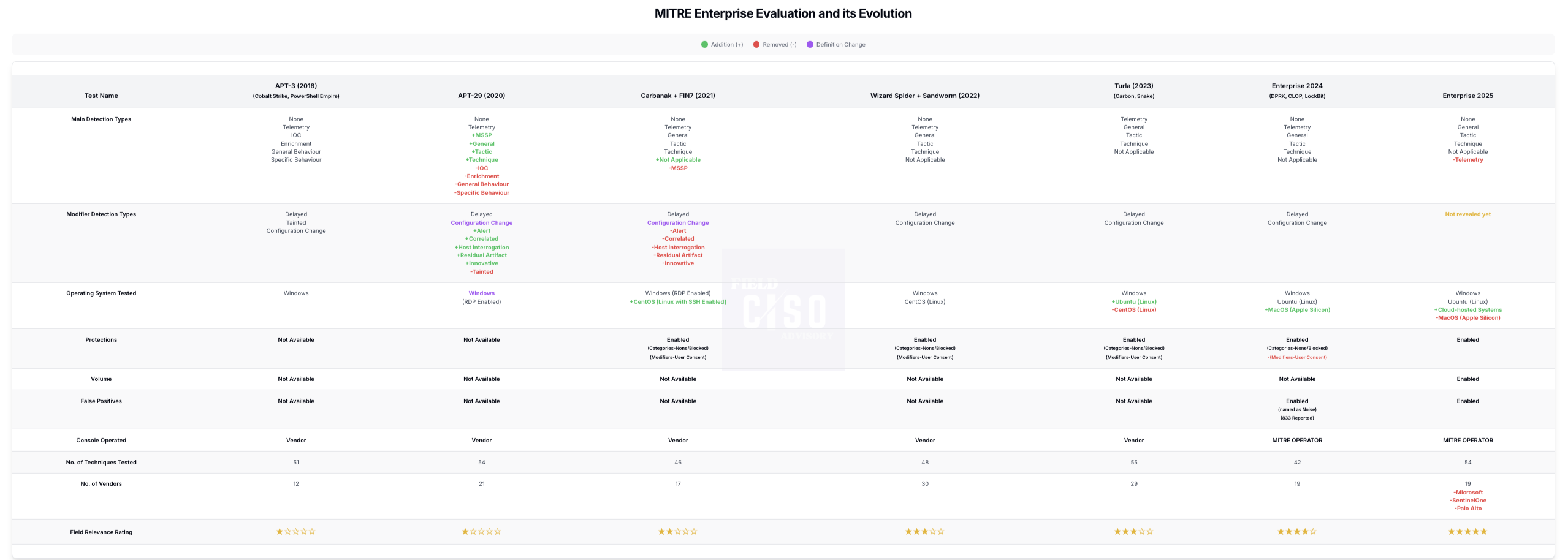 Over the years, it has evolved according to the present needs, like providing a list of false positives(as we have discussed before). In 2025 evaluations, as the field-relevant ratings are 5 star, some major EDR/XDR vendors like Microsoft Defender, SentinelOne and Palo Alto Networks have stepped back from MITRE Evaluation citing internal reasons and focus on product roadmap and execution. This stepping back isn’t good for the industry overall as it will reduce the transparency and confidence that the industry requires at this point. Additionally, as leaders in the market Microsoft, Palo Alto Networks and SentinelOne have a responsibility towards the industry and the decision to step away shouldn’t be taken in isolation.